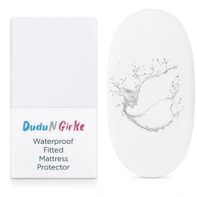 Dudu N Girlie Moses Basket Mattress Protector Waterproof 65 x 28 cm Fitted Cover for Baby Breathable and Non Noisy Anti Bacterial Fully Fitted. White