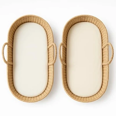 Dudu N Girlie Moses Basket Sheets Fully Fitted 75 x 30 Bedding Hypoallergenic Baby Pram Elasticated Breathable Easy Care (Pack of 2, Cream)
