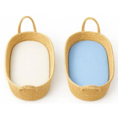 Dudu N Girlie Moses Basket Sheets Fully Fitted 75 x 30 Bedding Hypoallergenic Baby Pram Elasticated Breathable Easy Care (Pack of 2, Cream & Blue)