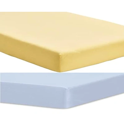 Dudu N Girlie Next to Me Crib Fitted Sheets For Chicco Next2me 51x85cm Jersey Soft Bedsheet Hypoallergenic Elasticated Breathable Cot (Pack of 2, Yellow & Blue)
