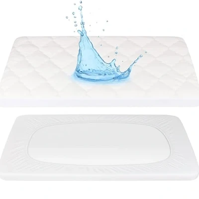 Waterproof Mattress Protector. 100% Cotton Terry Top,100% waterproof and breathable Fully fitted elasticated skirt to ensure sheet stays in place, PU Backing Creates No Noise Unlike Cheap Crinkle Version. Protects: acts as an allergen and dustmite barrier Machine washable & tumble dryer safe. Available in Moses Basket,Travel Cot, Cot Bed, Single, Double, King and Super king Size