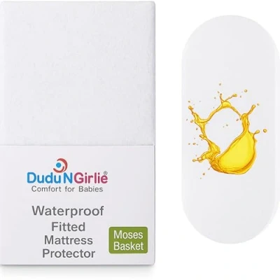 Dudu N Girlie Terry Cotton 100 Percent Waterproof Moses Basket Mattress Protector, 36 cm x 75