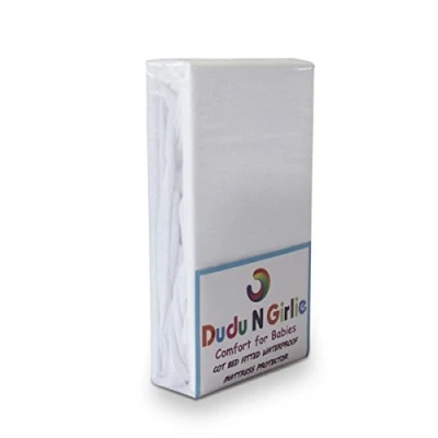Dudu N Girlie Travel Cot Waterproof Mattress Protector Toddler Bed Cotton Fitted Sheet for Topper White, 65x95x10 cm.