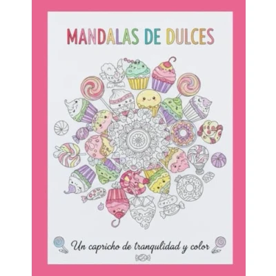 Dulces kawaii con mandalas Libro de Colorear para Adultos, Niños y Niñas: Dibujos tiernos relajantes Postres golosinas llenos