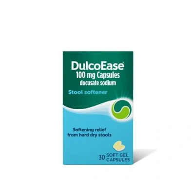 DulcoEase 100 mg Docusate Sodium Capsules Softening Constipation Relief Pack of 30 Soft Gel Stool Laxative