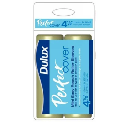 General description The Dulux Perfect Cover Easy Reach Mini Paint Roller Sleeve is designed for efficient painting in hard-to-reach areas, such as behind radiators. This 2-pack of 4.5-inch (112mm) sleeves is perfect for achieving a smooth and even finish. Technical specifications Size: 4.5 inches (112mm) Material: Micropile fabric Compatibility and accessories Compatible with Dulux Perfect Cover Easy Reach Mini Roller Suitable for all types of emulsion paint