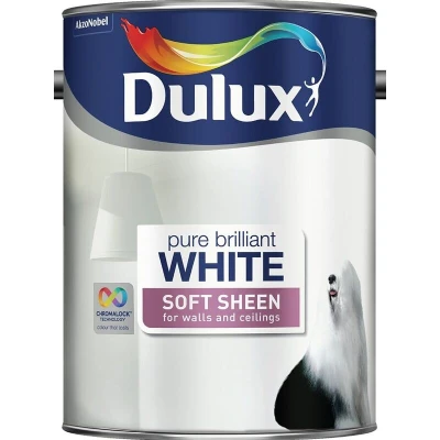 Dulux Soft Sheen Emulsion Paint For Walls And Ceilings Pure Brilliant White 5L