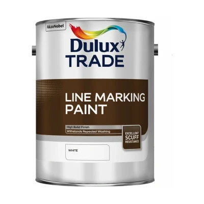 General description Dulux Trade Line Marking Paint is designed for both interior and exterior applications, ideal for marking areas such as car parks and demarcation zones on concrete and asphalt surfaces. Technical specifications Finish: Matt Coverage: Up to 10m² per litre Drying Time: 30 minutes Recoatable: 1 hour Composition: Solvent-based Installation Application Method: Brush or roller only (do not spray) Stir thoroughly before use Apply 1 or 2 coats after surface preparation Do not use in cold, damp conditions Usage A single coat at standard thickness is normally touch dry after 30 minutes Resistant to vehicular traffic after 2 hours Recoat after 1 hour