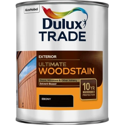 General description Dulux Trade Ultimate Woodstain is a high-performance solvent-based exterior woodstain that provides a water-repellent satin finish. With its unique Ultimate wood protection technology, it ensures that exterior joinery is safeguarded against extreme weather conditions for up to 10 years when applied according to instructions, maintaining its appearance for longer. Technical specifications Type: Solvent-Based Coverage: Up to 20m² per litre Touch Dry: 4-6 hours Recoatable: 16 hours Application Method: By Brush or Roller only Coats Required: 2 or 3 Compatibility and accessories Suitable for hardwoods and softwoods Installation Stir thoroughly before use Do not thin