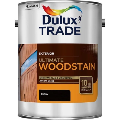 General description Dulux Trade Ultimate Woodstain is a high-performance solvent-based exterior woodstain that provides a water-repellent satin finish. With its unique Ultimate wood protection technology, it protects exterior joinery from extreme weather for up to 10 years when applied according to instructions, ensuring that surfaces look better for longer. Technical specifications Type: Solvent-Based Protection Duration: 10 Years Weathershield Protection Application Method: By Brush or Roller only Coverage: Up to 20m² per litre Touch Dry: 4-6 Hours Recoatable: 16 Hours Compatibility and accessories Suitable for hardwoods and softwoods Installation Stir thoroughly before use Do not thin Apply 2 or 3 coats