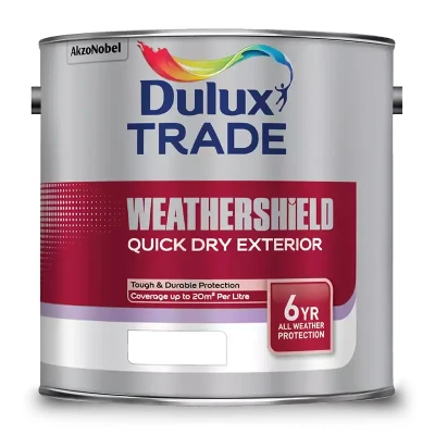 Dulux Trade Weathershield Quick Dry Exterior Paint, Pure Brilliant White High Gloss 5L