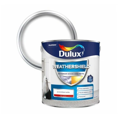 Dulux Weather Shield Exterior High Gloss Paint, 2.5 L Pure Brilliant White