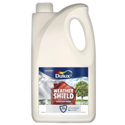 General description Dulux Weathershield Multi-Surface Fungicidal Wash is a ready-to-use, water-based cleaner designed to effectively remove algae, fungi, mould, and lichen from masonry surfaces. It is suitable for use on both new and previously painted interior or exterior wood surfaces. This product is mould resistant, easy to use, and quick to dry, providing total weather protection. Technical specifications Volume: 2.5L Coverage: 1 litre per 25 square metres Installation Apply with a brush only to new or painted surfaces.