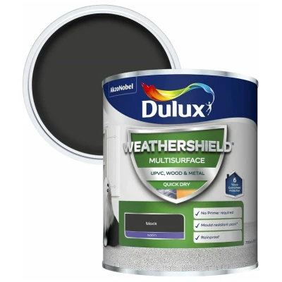 Dulux Weathershield Quick Dry Multi Surface Paint, Satin Black Wood and Metal (No Primer/Undercoat Required), 750 ml for UPVC