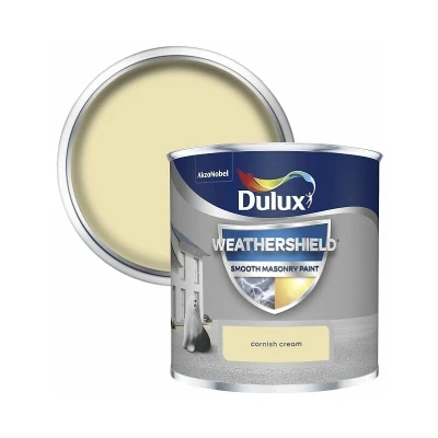 General description Dulux Weathershield All Weather Protection Smooth Masonry Paint is an exterior wall paint formulated with unique Stay Clean technology that protects against dirt and mould growth within the paint film, ensuring long-lasting colour and finish. This high-performance paint is designed to withstand all weather conditions for up to 15 years. Technical specifications Volume: 250ml Coverage: Up to 15m²/litre Drying Time: 4 hours Coats: 2 Installation Ensure the wall is dry before paint application. Apply 2 coats using a suitable brush or roller. Leave 4 hours between coats. Do not use on common or Fletton bricks. Apply only in dry conditions, above 10°C, and when bad weather is not forecast. Usage For best results, mix multiple cans together in a larger container or finish in a corner before starting a new can. Other information Weathershield Promise: If your walls peel, flake, or there is mould growth within the paint film while you live in your home, the value of a