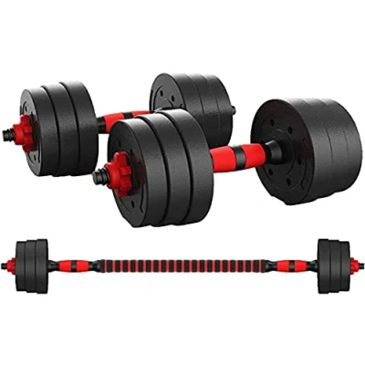 DUMBBELLS & BARBELL | The weights set includes 2 dumbbells bar and 1 foam barbell rod. You can adjust handlebar plates according to your needs. Perfect for home workout, muscle weight training, fitness, gym exercises EASY ASSEMBLY & COMPACT DESIGN | Equipped with thick and smooth nuts that are easy to turn. The dumbbell set will not hurt your hands when assembling or using. After disassembly, it is easy to carry, also need a small storage space, suitable for home or office fitness training as you want. ANTI-SLIP DESIGN | Our dumbbell sets are designed with non-slip handles to prevent slipping during exercise and ensure a firm comfortable grip. QUALITY AND STURDY | It is made of high quality material and is durable and long lasting, high temperature resistance, anti-aging.