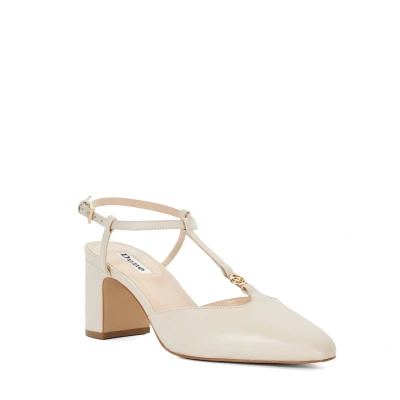 Dune Ladies Dominate Patent T Bar Slingback Courts Size UK 8 Block Heel Court Shoes Cream