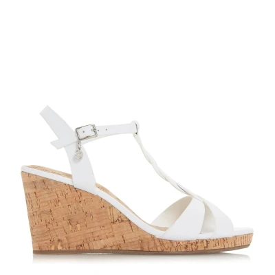 Dune Ladies Koala Plait T Bar Strap Cork Wedge Heel Size UK 8 Wedges White