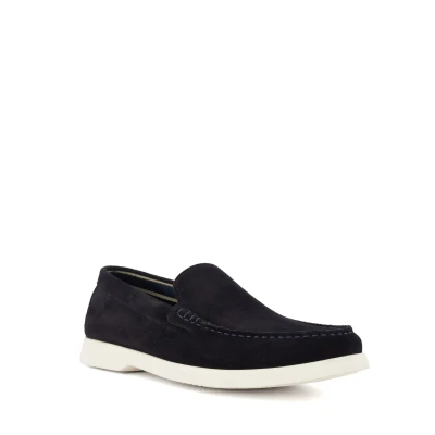 Dune London Mens Buftonn Topstitch Casual Loafers Navy Leather (archived) Size UK 10