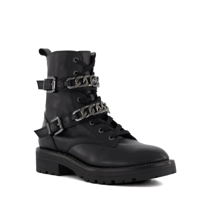 Take casual dressing to new heights with stand-out ankle boot Plazes. Crafted with the finest materials, the upper of this classic round-toed silhouette culminates with a side buckle and metal eyelets and boasts chain details along the rim and branded ankle straps. Finished with a side zip and cleated sole, Plazes is sure to become the focal point of everyday ensembles.