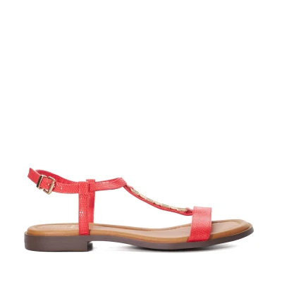 Dune London Womens Ladies Lottys Chain Detail Croc Effect Flat Sandals Red Leather Size UK 3