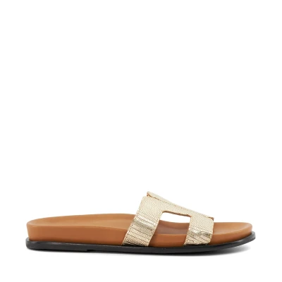 Dune London Womens Ladies Loupa Topstitch Detail Comfort Footbed Slider Sandals Gold Suede Size UK 8