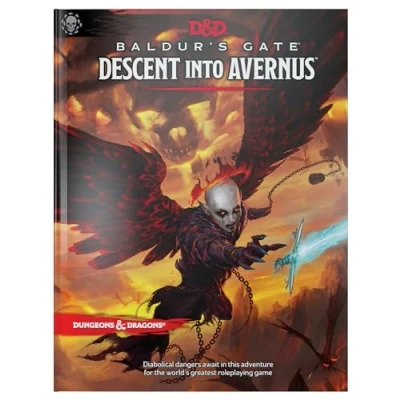 Save Baldur’s Gate from being dragged into Avernus and its citizens from becoming fodder in the vicious battle between demons and devils known as the Blood War. Set in an unforgiving plane and packed full of fresh adventures, chilling monsters, and brand-new mechanics, Descent into Avernus gives Dungeon Masters all they need to lead their adventurers into the Nine Hells. Introduces mechanics such as devils deals and the epic Infernal War Machines. This adventure takes players from levels 1 to 13., Manufacturer: Dungeons & Dragons