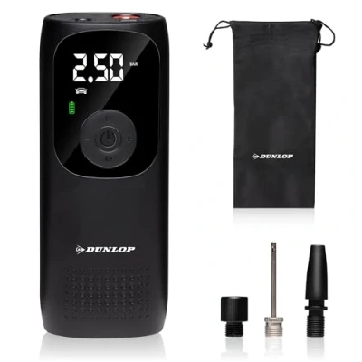 UNIVERSAL USE - With 5 different usage scenarios and 3 different adapters included, you can inflate your car, motorbike, bicycle, ball or any other object of your choice. SMART PUMP - The usage scenario and the set pressure are automatically stored by the software. If you choose a different usage scenario, the corresponding pressure will be set automatically! DIGITAL DISPLAY - The air pump is button-controlled and equipped with a digital display on which the air pressure is easy to read, even in the dark. WITH LED LAMP - Whether in the daytime or in the late evening, the LED light on top of the portable air pump gives you a good view of the valve so that you can easily connect the adapter., Weight: 1.1464037624 pounds, Manufacturer: Dunlop