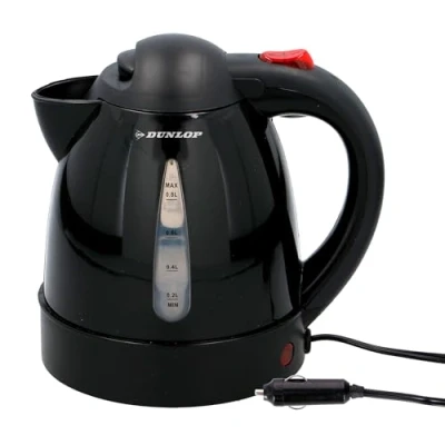 TRAVEL KETTLE 0.8L - Enjoy a delightful cup of coffee or tea on the go with this 24V travel kettle from Dunlop. With a maximum capacity of 0.8L, you can boil enough water for a cup of tea, instant coffee, or noodles. Alternatively, use the kettle for making soup on the go. TRUCK, CAR, AND CAMPING KETTLE - With a maximum power of 12V/150W for car use and 24V/250W for use in trucks and campers, the Dunlop Travel Kettle provides rapid and efficient heating. SAFE TO USE BLACK KETTLE - Dry boil protection ensures safety by preventing overheating or accidental operation without water. Automatic shut-off stops the kettle once water reaches the desired temperature. PORTABLE KETTLE WITH THERMAL PROTECTION - Enjoy peace of mind with thermal protection and dry boil protection, preventing overheating or accidental operation without water. CAR KETTLE WITH CIGARETTE LIGHTER SOCKET CONNECTION - The convenient cigarette lighter socket connection makes it easy to use the kettle anywhere you like.