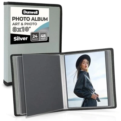 Dunwell Art Portfolio Folder for 8x10 Photos (Silver), Soft Cover Album with 24 Bound Pages, Displays 48 or Artwork, Presentation Binder 8 x 10 Sheet Protectors, Archival Quality Poly