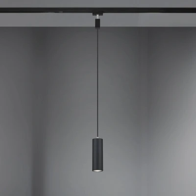 Slim GU10 pendant luminaire forDUOline 2-circuit track system This pendant luminaire with a slim, cylindrical shade is designed for the DUOline 2-phase track system. Depending on the GU10 lamp used, the pendant luminaire provides targeted light or wide area illumination. The pendant luminaire is particularly suitable for equipping the track system above tables or counters.