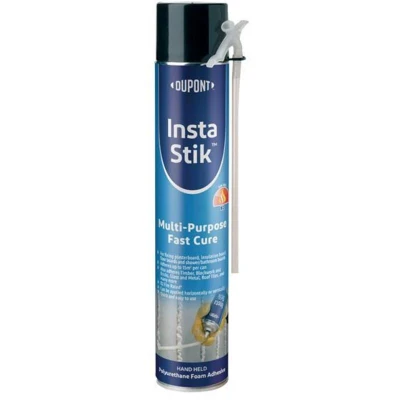 General description DuPont Insta Stik™ is a polyurethane foam adhesive designed for quick and easy application. It is suitable for fixing plasterboard, insulation board, and most common building substrates without the need for tools or mixing, eliminating the hassle of heavy bags of dry wall adhesive.