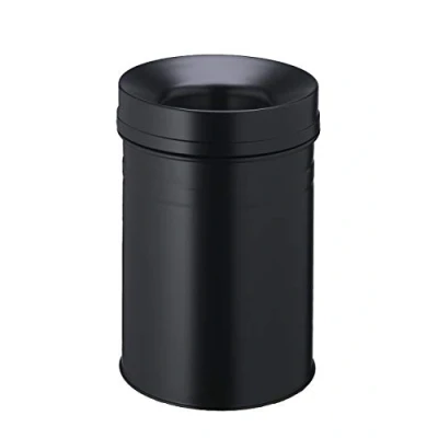 Waste basket with fire extinguishing lid providing preventative fire protection TÜV certified - recognised product safety certification Made from steel with scratch resistant epoxy polyester coating 15 litres Dimensions (H x Ø): 375 x 260 mm