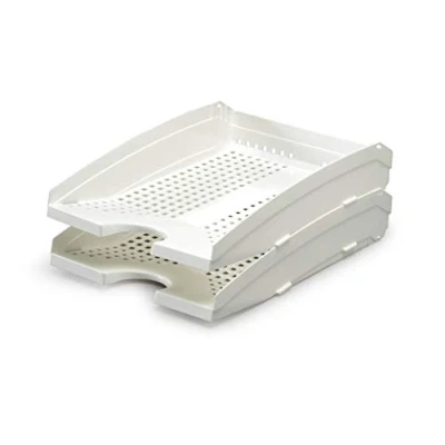 Letter tray dimensions: 250 x 70 x 337 mm (W x H x D); suitable for formats up to DIN A4 to C4 Set of 6 white letter trays with glossy finish, made by Durable - a leading German brand Stackable design with adjustable opening angle, made in Germany, material: polystyrene Recommended uses: organization of documents, school books, and office supplies Care instructions: wipe with a damp cloth, not dishwasher safe, maximum weight recommendation: 2 kg