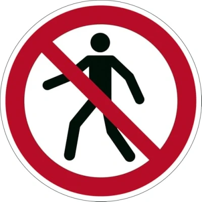 Self-adhesive registered safety mark "Forbidden for pedestrians", P004 according to ISO 7010 Pedestrian prohibition sign for placing on indoor floors, e.g. in warehouses, distribution centres, production, etc. Abrasion-resistant and hard-wearing floor sticker according to ASR A1.3 and DIN EN ISO 7010 and ASR A1.5/1.2 "Floors" according to DIN 51130 Slip resistance (R-group) R9 Floor markings support the communication of health and safety instructions and warnings dimensions sticker: Ø 430 mm, thickness 0,4 mm