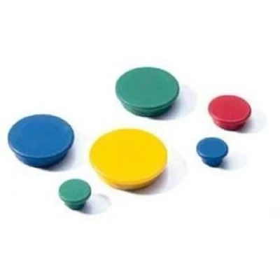 Magnets round with coloured plastic cap; For use on magnetic boards, magnetic tapes etc. Practical grip edge makes it easier to put the magnets on and take them off Magnet diameter: 21 mm Holding force: 210 p Ideal for use as pinboard magnet, office magnet, refrigerator magnet or whiteboard magnet
