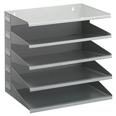 Sorting tray with 5 compartments and lateral label windows Ideal for clear sorting of documents, storage trays are suitable for documents in A4/Folio format Grey sorting compartments made of powder-coated sheet steel; wall mounting possible Dimensions of the sorting station: 360 x 330 x 250 mm (W x H x D) Environmentally friendly according to ISO 14021: 100% recyclable, up to 60% recycled