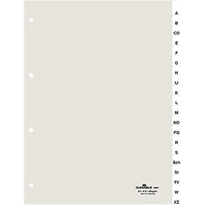 ORGANISATION: the index system from durable allows you to quickly organise your A4 documents and helps protect them with the included cover sheet REINFORCED: the index sheets have reinforced tabs to ensure that the inserts can be reused time and time again and are extremely durable PUNCHING FORMAT: the index system has pre-punched holes to help you quickly file documents, the punching measures 80 x 80 x 80mm FORMAT: the A-Z organiser is designed to be used with A4 documents and completely protects the inserts thanks to the cover MADE IN GERMANY - designed and built in Germany to a high standard from premium materials with strict quality control, everything we make is built to last