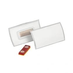 Convex Polypropylene name badge with magnetic fastening. Prevents name badge from twisting, slipping or coming loose when worn. High wearing comfort and good readability. Particularly suitable for people at conferences and large events.