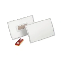 Convex Polypropylene name badge with magnetic fastening. Prevents name badge from twisting, slipping or coming loose when worn. High wearing comfort and good readability. Particularly suitable for people at conferences and large events.