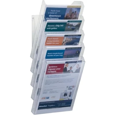 EASY TO USE: This set of 5 literature holders is easy to assemble and either place on a table or attach to a wall to present brochures, magazines, flyers, etc DIMENSIONS: The literature holder includes 5 individual literature holders, two brackets and one front plate. Stand dimensions: 288 x 242 x 259 mm (H x W x D) - Wall Dimensions: 580 x 242 x 155 mm (H x W x D) APPLICATION USE: Ideal for use as a flyer or document holder, magazine rack, brochure holder, etc. in reception areas, exhibitions, offices, etc EXTENDABLE: The literature holder can be extended by purchasing additional COMBIBOXX products to increase the stoage capacity MADE IN GERMANY: Durable is one of the leading German brand manufacturers of office organisation and presentation equipment
