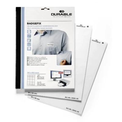 Durable DB80664 Badgefix Self Adhesive Name Badge 30 mm x 60 White (Pack of 20 Sheets/540 Badges)