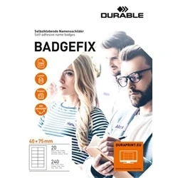 Durable DB80666 Badgefix Self Adhesive Name Badge 40 mm x 75 White (Pack of 20 Sheets/240 Badges)