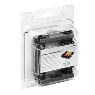 FULL PRINTING SET - This badge printing set from Durable includes 100 standard white plastic cards and a CMYK colour ribbon which provides 100 prints EASY TO USE - The ribbon can be easily inserted and replaced when required and thanks to the compact format and RFID coding, it allows for accurate printing when used in the DURACARD ID 300 printer AREA OF APPLICATION - Ideal for designing and printing name badges, ID cards, loyalty cards, etc. Cards can be designed in moments using Durables free to use software - DURAPRINT HIGH-QUALITY - Durable is one of the leading German brand companies in the field of office organisation and presentation materials TECHNICAL SPEC - For single-sided printing of plastic cards in the format 53.98 x 85.60 mm for a borderless and waterproof print that leaves a photo quality due to 260 x 300 dpi resolution
