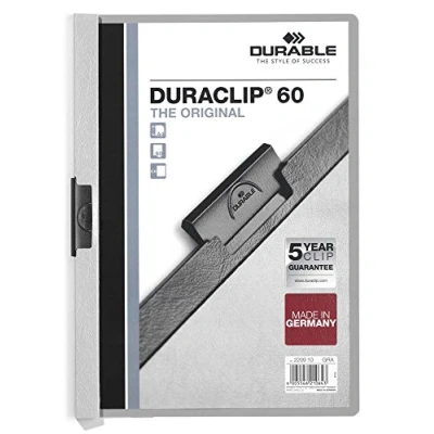 Durable is a trusted brand in office organisation and presentation equipment, proudly manufacturing the DURACLIP 60 folder in Germany. This commitment to quality is reflected not only in the materials used but also in the craftsmanship of the clip itself. To provide added peace of mind, Durable offers a 5-year guarantee on the metal clip, showcasing confidence in their product's longevity and reliability.