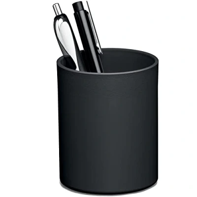 EurofficePractical and sturdy pen cup. Large volume. Made from premium recycled materials for a robust and stylish design. For pens, scissors, highlighters, etc.. Certification: Blue Angel. Diameter 80mm. Height: 100 mm. Colour: Black.