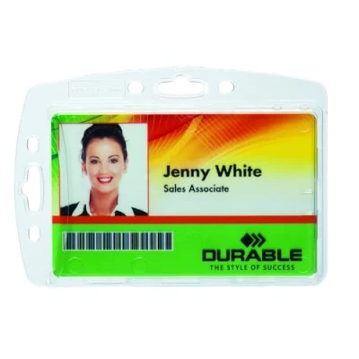 EurofficeSecurely holds badge in place making it visible at all times. Protects the name badge from damage and scratches. Secures cards without damaging magnetic strip. Can be used in portrait and landscape. Can be combined with DURABLE badge accessories.