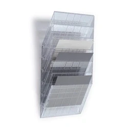 Wall brochure holder FLEXIBOXX with 6 compartments for information in A4 landscape format Magazine holder with 6 compartments with filling capacity 24 mm Transparent compartments for wall mounting, dimensions: 348 x 620 x 95 mm (W x H x D) Expandable up to a load capacity of approx, 6 kg with FLEXIBOXX A4 EXTENSION modules Ideal as flyer holder and newspaper rack in reception and waiting areas, as wall holder in the office or workshop planner/order planner