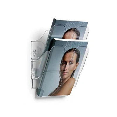 Wall brochure holder FLEXIPLUS with 2 compartments for information in A5 format Leaflet holder A5 with 2 compartments with filling capacity 23 mm Transparent compartments for wall mounting, dimensions: 180 x 250 x 105 mm (W x H x D) Ideal as flyer holder and newspaper rack in reception and waiting areas, at trade fairs or in the office Made in Germany! Durable is one of the leading German brand manufacturers of office organisation and presentation equipment.
