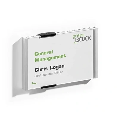 IDEAL-QUALITY: The sign is made from a stable aluminium frame within acrylic face place and an exchangeable cardboard inlay FIXINGS INCLUDED: The sign includes a mounting kit as well as drilling template and instructions for easy installation FREE DESIGN SOFTWARE: Templaces and be designed and downloaded for free from the Durable Website via our free to use DURAPRINT software AREAS OF APPLICATION: ideal for clearly identifying rooms and locations in places such as offices, hotels, public buildings, retail, etc. DIMENSIONS: The sign measures 149 x 105,5mm to provide you with a clear and easy to read signage solution